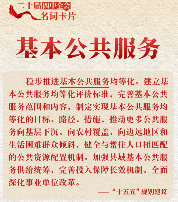 ??四是加大基本公共服務(wù)保障力度。強(qiáng)化基本公共服務(wù)中央事權(quán)和支出責(zé)任,合理提高基本公共服務(wù)支出占財(cái)政支出比重,構(gòu)建多元供給格局,完善基本公共服務(wù)均等化投入保障長(zhǎng)效機(jī)制。(據(jù)《黨的二十屆四中全會(huì)<建議>學(xué)習(xí)輔導(dǎo)百問》)